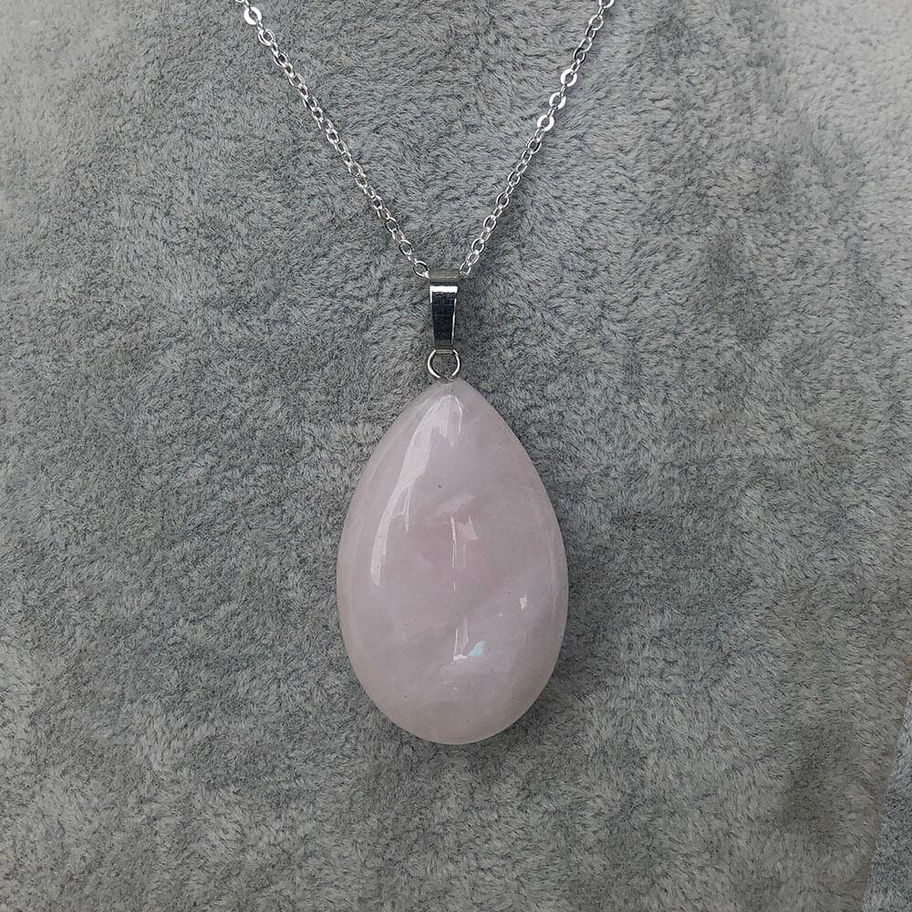 Damla Kesim Pembe Kuvars Taşı Doğal Taş Kolye