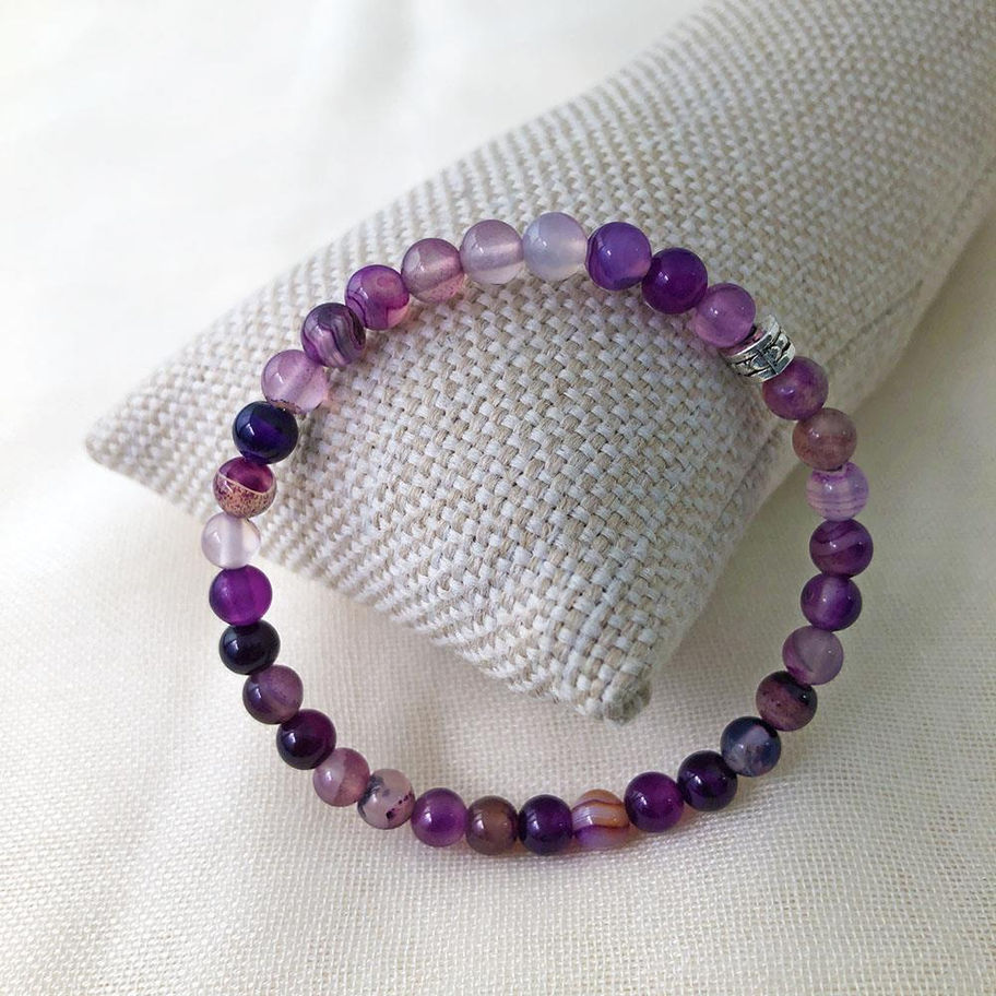 Küre Kesim Mor Akik Taşı Doğal Taş Bileklik 6 MM